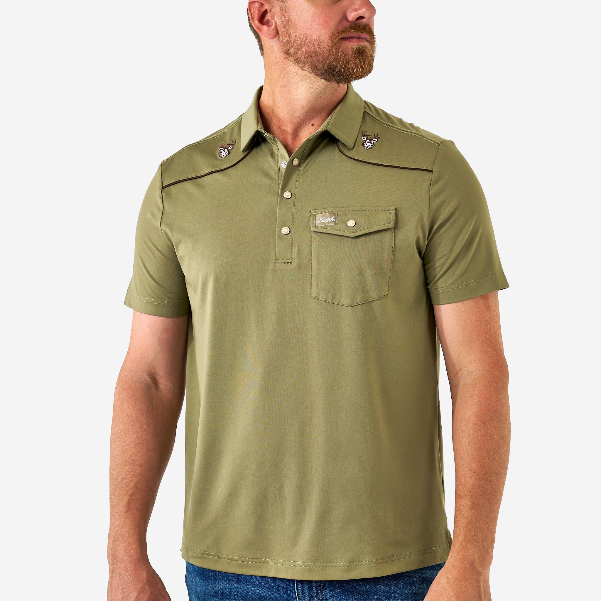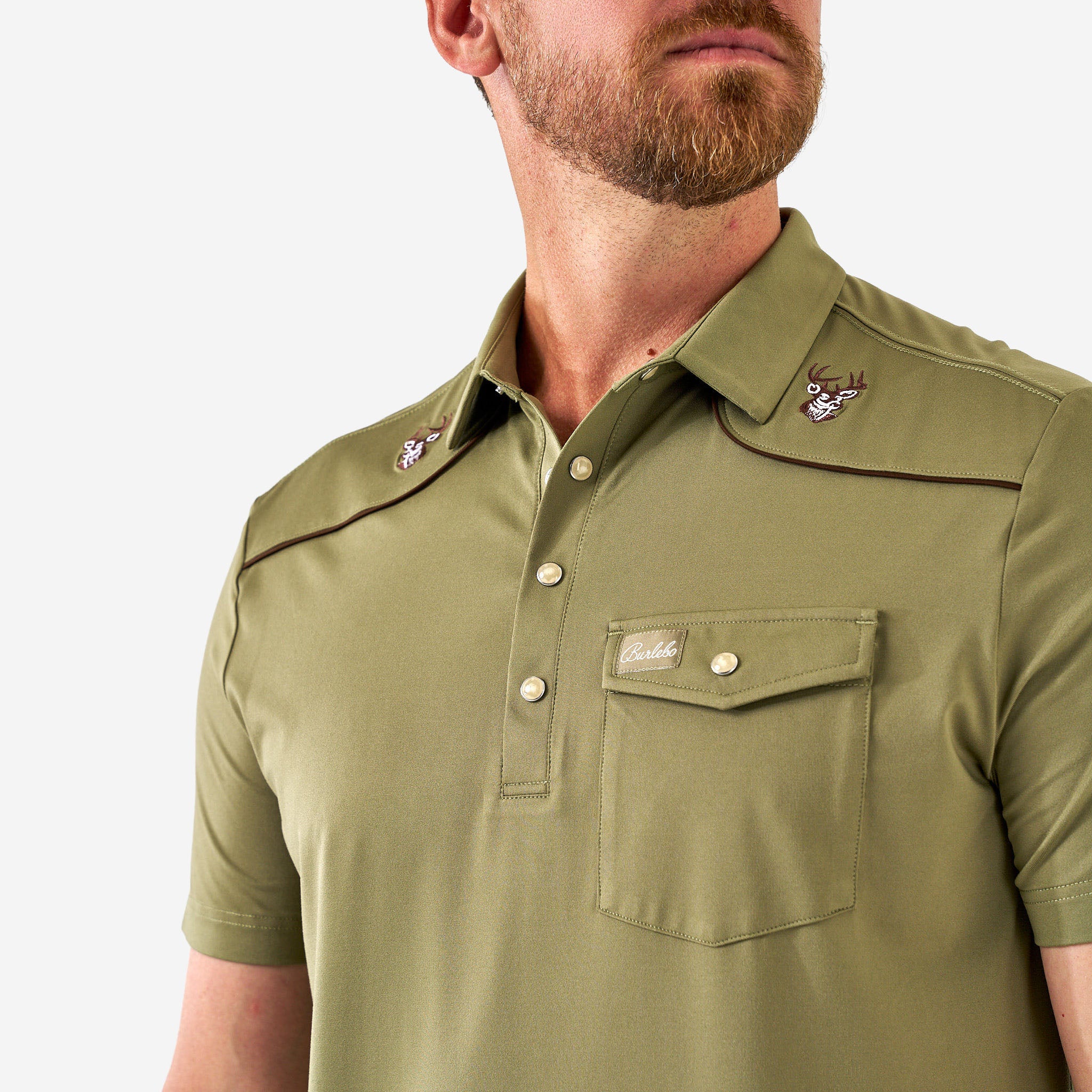 Pearl Snap Performance Polo. where style meets functionality. Made in our best selling Performance Material. With 91% Polyester and 9% Spandex. this polo offers unparalleled comfort and versatility. With quick-dry and moisture-wicking properties. our Performance Polo keeps you cool and dry all day long. whether you’re attending a tee time. date nights. sport events. work. or simply enjoying everyday activities. Plus. with the UPF 50 protection. you can stay shielded from the sun’s harmful rays.