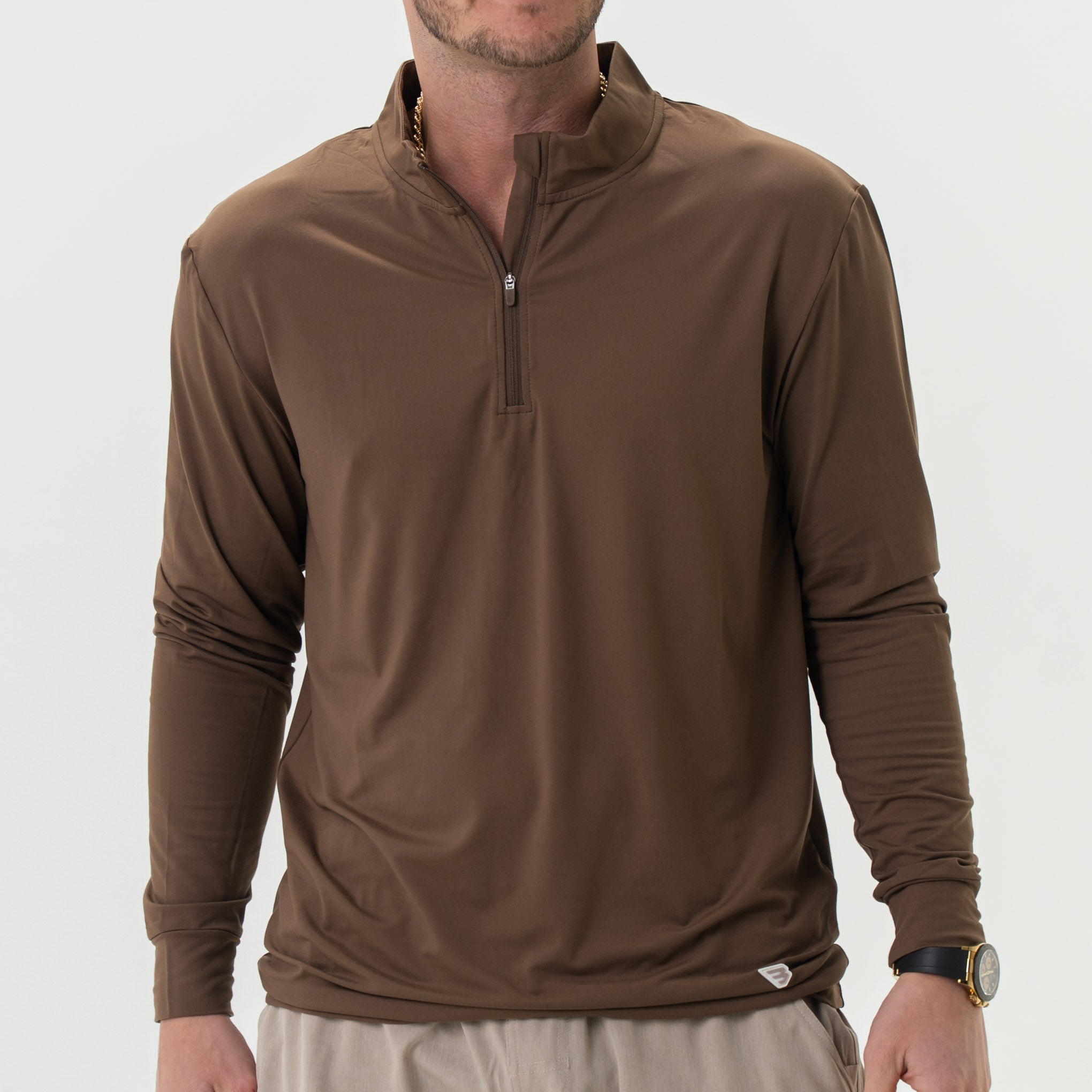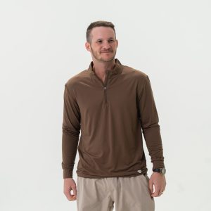 Performance Quarter Zip. the ultimate fusion of style and functionality. A blend of 91% Polyester and 9% Spandex. this quarter zip delivers lightweight performance with every wear. The quarter zip design allows for easy on and off. while providing customizable ventilation to keep you comfortable in any temperature. Featuring UPF 50 sun protection. this quarter zip is your go-to choice for outdoor activities under the sun. The quick-dry. moisture-wicking. and antimicrobial properties ensure you stay dry. fresh. and comfortable throughout your day.