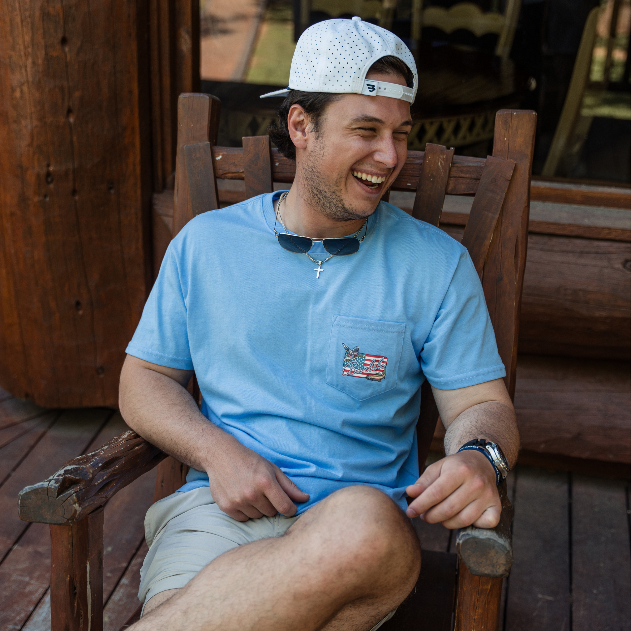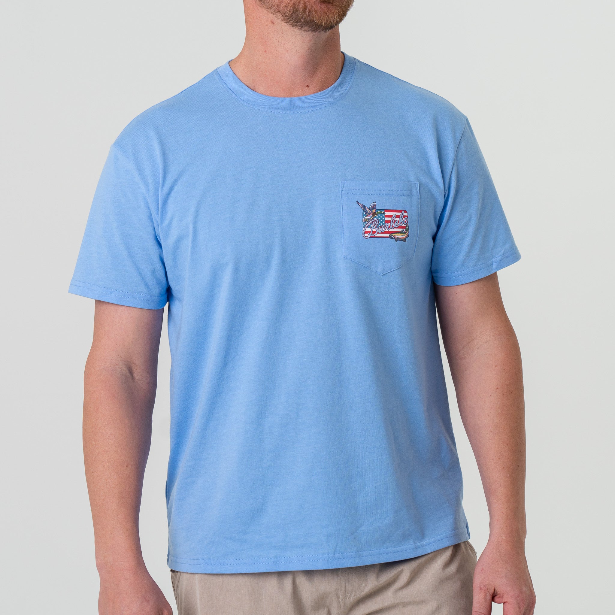 Short Sleeve Tee – BURLEBO Patch Flag – Heather Periwinkle